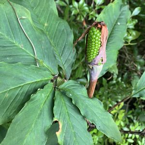 埼玉県県民の森にて ①とうもろこしの🌽ようなテンナンショウの実 ②咲いたところが見たかったオオウバユリ③ノリウツギ ④ダンスをしている雲⛈️