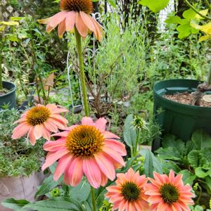 こんにちは😊 今日はかなり暑かったです🥵 ボランティア花壇にお花を植えたら、夏のお花が欲しくなってお花屋さんへ🚗 八重咲きジニアを買いに行きましたが、無くて、結局値下げされていたお花達をお迎えしました😁 ①エキナセア アルチザン ②ジニア レッド ニチニチソウ ホワイト ③カリブラコア オロダブル マジェンタ ④八重咲きガザニア ロミーヌ ⑤百合が咲いてきました🤍🩷
