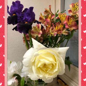 アルストロメリアと一緒に アイリスと薔薇の花💐もいただきました😊