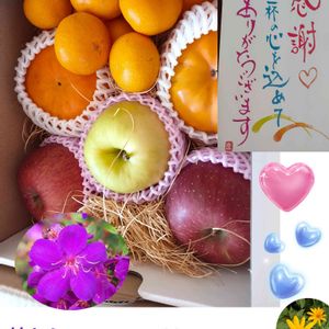 大阪の娘からの 贈り物❣️🍎🍊🍏 なかなか帰って来ない🤭 私たちを労って⁉️ ありがたい🤗💕🤣🎊 いただきま〜す😂😂❣️