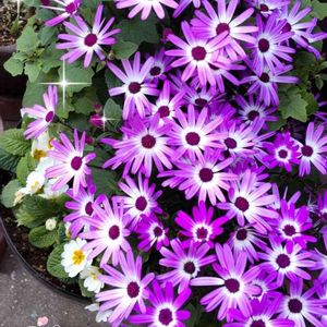 今日のお目覚め👁👁❣️ サイネリア☘️💜 鮮やかに🎶🤗 満開です🙆🌸🍀💕 素敵な週末をお過ごし下さい🙇♀️💦❣️