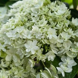 アジサイヘイズ スターバースト とても好きなアジサイ。 グリーンホワイトの花色で 地面に植えても色は変化しません。 八重咲きアナベルさん。