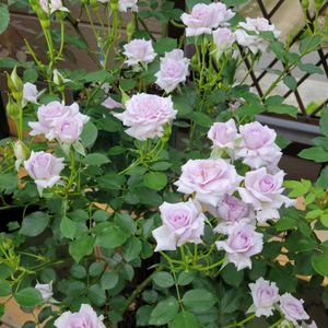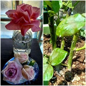 こんなに株本もガッチリ、茎も太いのに「バラの海」はミニバラだった😅葉が少ないので花と蕾を✂️