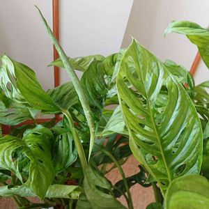 マドカズラも新しい葉が次々に。 開いたばかりの葉の シルクのような光沢は格別です。 ずっと床に置いていたけど スタンド鉢カバーに入れて高さを出して 光がよく当たるようにと ツルが垂れ下がるようにしたいなぁと 計画中です。