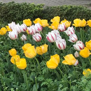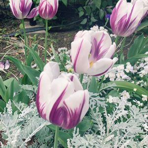 近くの庭園に咲いていたチューリップ🌷 白と紫のグラデーションがなんともキレイ✨ 風に飛ばされまいと踏ん張っていました🍃