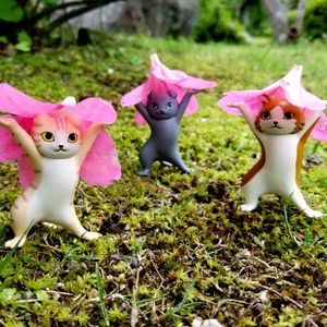 22日は猫の日~😼 みちのすけさんのニャンニャン祭に参加します☺️ 夏のお花をかかげて🙌 猫型妖精がはいポーズ🧚 ガチャねこ🏷️ついてます😺