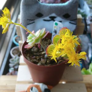 🏷️ニャンニャン祭りに参加します🐱 セダム 薄化粧さんと三毛猫ちゃんです🐈 薄化粧さん、少し前に1輪咲いて投稿したばかりですが、ほぼ満開になってかわいいので再登場させて頂きました💄💋✨ 再登場ですみませんと、花以外がボケてすみませんをねこちゃんが代わりに謝ってくれています<(_ _*)>