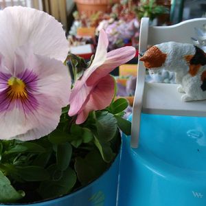 🏷️ニャンニャン祭りに参加します🐱② ピンクのパンジーさんとおじぎ三毛猫ちゃんです(ФωФ) 前picに出たおじぎ三毛猫だニャー🐱 ピンぼけで納得いかないから再登場させてもらうニャー🐈 こんなにかわいいお花を咲かせてくれてありがとうニャー🐈