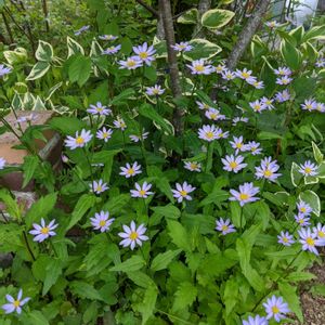 ご無沙汰してました🙇 裏庭の野紺菊が群生して咲いてます 前庭のシオンも優しく咲き出しました 小鳥さんのプレゼント🎁の秋明菊のピンクも白も(お隣りさんから頂いた)やっと咲き出しましたよ 最後の大文字草も去年は暑すぎて咲かなかったけど(諦めてた😅) 今年は可愛いお花見せてくれて嬉しいです☺️✨