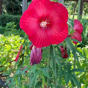 ハイビスカスの親玉!タイタンビスカスも真っ盛り♪ 渋谷区ふれあい植物センター 外花壇です
