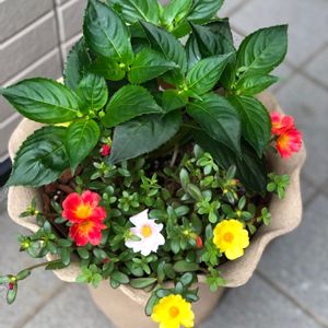 2021.7 寄せ植え🤗 ・ サンパチェンスとポーチュラカの寄せ植え作ってみました❣️ ・ 暑さに強い同士、早くサンパチェンスも咲いて欲しいなぁ〜😊