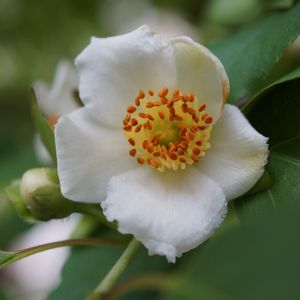 庭の姫沙羅(ヒメシャラ)が咲いています😄 昨日、庭のパトロールのとき花が落ちているのを見つけて、見上げてみたら咲いていました😅目線の高さの蕾はまだ咲いていないのに、高いところではたくさん咲いていました。今朝、どうかな~と見てみたら。カメラが届くところでも咲いています😊 またもや、開花ラッシュです。アップが追いつきません💦