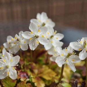 日曜日の節分草です。 暖かな日差しを浴びて、伸びをするような姿です。