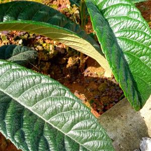 種からの小さな苗を頂いて植えたらこんなにかっこいい葉🌿😃(アテモヤ) でもびわの葉🌿に似てるんですがー! 今日は早いおやすみなさい!😉 勿論まだ寝ませんよ!😆🙏
