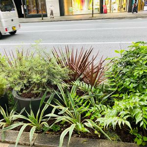 銀座4丁目の植栽たち🌿🌱🍀🍂☘️ 銀座のエキゾチックなグリーンたち