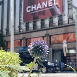 銀座4丁目交差点。 側道のところに素敵な花壇🧑🌾 ルリタマアザミと、エキナセア 母といとこと楽しいお食事しました♪