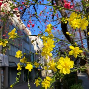 花散歩で見つけました 枝垂れ桃とヤマブキ