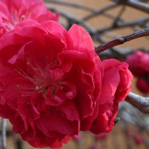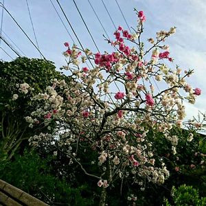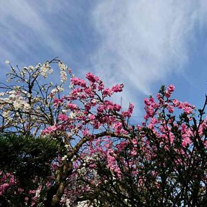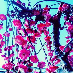 紅白 両方の花がひとつの木に咲く しだれ桃が満開に♪ もう30年位前に 父が分けてもらってきた1mにみたない位の木が 今では3mを越える位になり 毎年たくさん花を咲かせてくれています♪ 高くて剪定もしていないのでボサボサですが(^^; 以前はもっと 紅白混じって咲いていたのが 年月が経って片方の色が強くなってきていますね💦