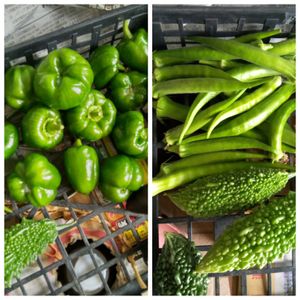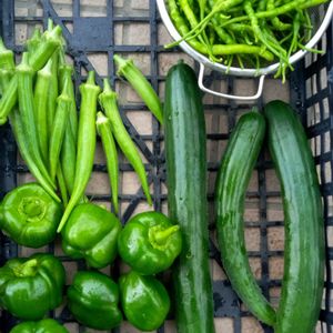 梅雨明けになったとたん梅雨みたいな天気が続いてます。合間をぬって収穫👍 相変わらずひもとうがらしは大収穫中。今晩の酒のツマミ。 キュウリはまたまた超ロング。オクラ、ピーマンもいよいよ最盛期😍