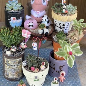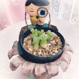 こんにちは♪ 🏷️ペコちゃん祭り fumi fumiちゃんからいただいたペコちゃんの鉢、オブジェ、ミルキーピック💕 ペコちゃん鉢にリバーシブル寄せ植えしました😊 pic1と3が表、pic2と4が裏 どちらから見ても可愛い寄せ植えは難しかったけど😅 久しぶりの寄せ植え楽しかったよ💕 前にお迎えしていたDAISO多肉のヘラクレス、シルバースター、ヌダの3種類をメインに寄せ植えしました🍀 pic2と4の左のはfumi fumiちゃんにいただいたリメ缶にいただいたアーモンドネックレスを植えてます🥰 アーモンドネックレス増やしたい👍 fumi fumiちゃんたくさん可愛いハンドメイドありがとうございます♡