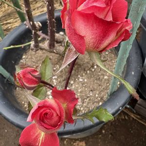 薔薇鉢の手入れ😊 秋に行う作業ですが、今日になってしまいました😅 剪定✂️追肥、殺菌。 蕾が3つ、 もう2ヶ月蕾のまま😁