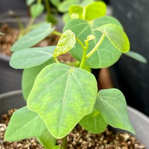 おはようございますє(・Θ・。)э››~♬ 丸っこい葉が可愛らしい アデニア・イサロエンシス 成長すると葉先が3つに別れた、カエデの様に、トケイソウ科の熱帯植物でつるを伸ばしながら成長📱(・ω・ )フムフム... 塊根植物で幹もぷっくり‼️📱(๑¤̴̶̷̀ω¤̴̶̷́๑)✧イイ 壺のような白いお花が咲くらしいのですが、どんなお花かなぁ(*‾᷄ ⁻̫ ‾᷅*)💭 頑張って育てなきゃ( *˙ω˙*)و グッ!
