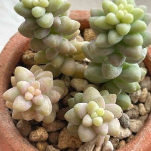 ピーチブリデをチョンパ✂️して、育てていた玉つづりと一緒に寄せ植えしました🎵 植え替える前、ペンデンスが入っていたのですが、上手く育たず抜いて別の鉢へ植えました(*^^*) 今日は朝からずっと多肉事していましたが、まだまだ植え替えやら手直しやらたくさんある💦 平日は仕事で多肉事できないから休みの日にがんばってます💪 楽しいなぁ~♪
