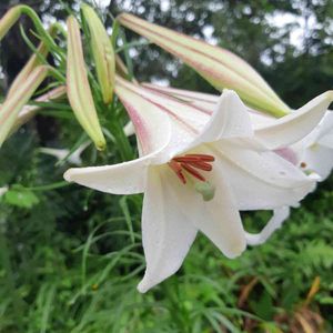 高砂ユリ 赤紫の筋が雨に濡れて綺麗😊