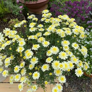 ボンザマーガレット 昨冬の初霜に当ててしまい 蕾も葉も半分枯れて やっと復活🌼 蕾はあるけど でも新芽がちょっと寂しい