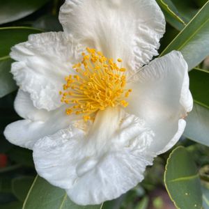 おはようございます 台湾つばき 真っ白で綺麗です🤗 玄関先に鉢植えがはなのお花はきれいなふる 今は鉢を割って根付いてしまいました😆