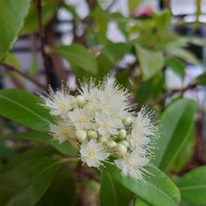 本日いちばんの発見👀✨ レモンマートルにお花が❗ あんまり咲いてくれなくて、6年間で3回目かなー? すっごくかわいい❤