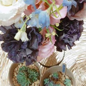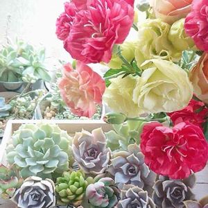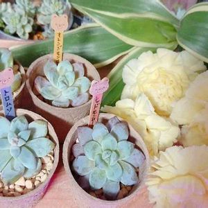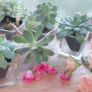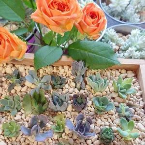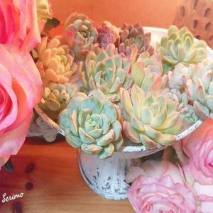 久しぶりに多肉事が出来ましたയꕤ*.゚ ☆になった子いくつか見つけて凹んでます( -᷄ω-᷅ ) 夏はこれから♨これ以上の被害が出るの恐い➰ ビビってあまりイジらず軽く🚿あげました💧 淡いピンクの薔薇が可愛いので 可愛い多肉ちゃん合わせました♡