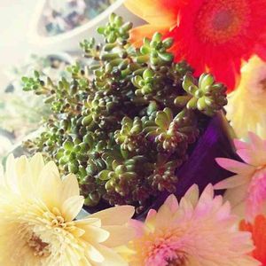 花🌼と多肉🌱♡ 今回は濃いオレンジ色の🌹をチョイス♪ ビタミンカラーで夏っぽくなりました🙌 夏っぽいのは◎だけどホントの夏は最近しんどい✖ 🏖いよいよですね〜(๑´^`๑)