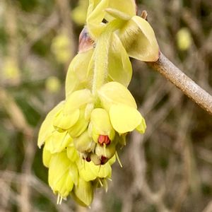 【ciitaの樹木一年シリーズ】3️⃣2️⃣ 🌿トサミズキ🌿土佐水木 マンサク科トサミズキ属の落葉低木 トサミズキの冬芽が可愛い色になってきたな〜と思っていたら、あちこちで黄色い花が咲き始めました💛 高知県特産の樹木で、蛇紋岩地や石灰岩地に自生しています。 それでトサミズキ♪ ①花 葉が出る前に花が咲きます💛 花柱2個がはみ出しています 葯の色は暗赤色 (ヒュウガミズキは黄色) ヒュウガミズキに似ていますが、花の数、花の大きさ、樹高どれも大きいので見分けられます。 2023.3.9撮影 ②新葉と花後 2024.4.14撮影 ③若い果実 2個の花柱が角状に残っています 2023.6.20撮影 ④果実(蒴果) 直径8〜10ミリの球形 熟すと2裂し、黒色の種子を2個出します 種子は長さ3〜5ミリで光沢あり ⑤冬芽と芽吹き このピンクと黄色のコントラストがとてもかわいくて大好き🩷💛 2024.3.13撮影