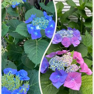 紫陽花の不思議⁇ ➡️が我が庭の地植え この子をプランターの培養土に挿し木したら今年、 ⬅️の子が咲きました😱 元々は、⬅️の子と同じ青い子を分けて貰ったんだけど… 我が庭の土が変なのかしら…🤔⁇⁇