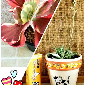 柴犬小夏さんの 🏷️牛の日 みらいさんの 🏷️錦の日 に参加します。😄🎶 ↖️紅葉が鮮やかだったけど、冬室内管理していたら中心からみどりんになってきました。😅 ↘️モーさん鉢に入れた祝宴錦の花が咲きだしました。😆💕✨ 北海道バターキャラメルを添えて。😋💖 頑張ろう❗日本‼️ 👊✨