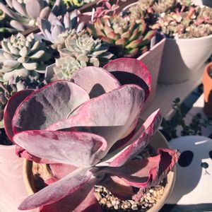 ⏪前のpicより 【カランコエ属 シルシフローラ錦】 Kalanchoe thyrsiflora f.variegata 和名 唐印錦 デザートローズ 砂漠の薔薇 【カランコエ属 ルーシー 錦】 Kalanchoe luciae f.variegata 和名 紅唐印 錦・唐印 錦 流通名 デザートローズ 錦 kazu様&びーばー様が立ち上げた 「🏷赤フチ同盟」に 参加させていただきますね ネームタグは【トーイン錦】 ホームセンターの売れ残りが、 うちの唐印錦で1番綺麗に✨ 画像のこちらは覆輪斑タイプ 唐印錦にはも中斑も存在し、 また3方向に葉を広げたり、 他には葉先が波打ったりの 変わり葉タイプもあるとの事 南アフリカ、ケープ州に分布🇿🇦