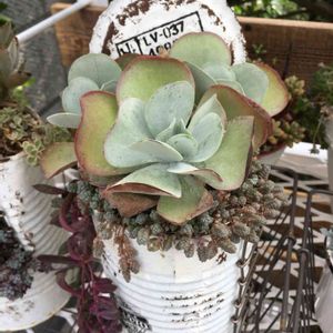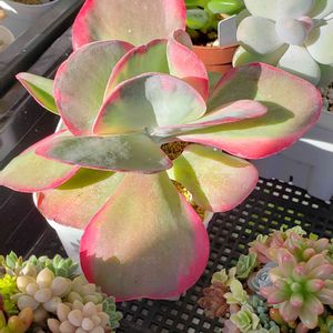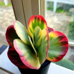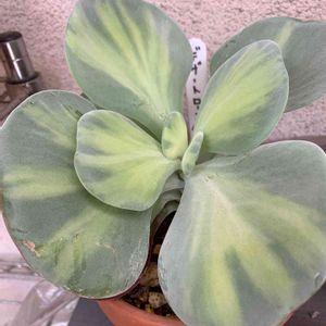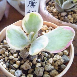 錦の日に初参加 ●デザートローズ錦(唐印錦) カランコエ属 錦の日その② わずかに斑が入ったデザートローズ 結構 大きく成長してきました 惚れ惚れ🥰🥰🥰