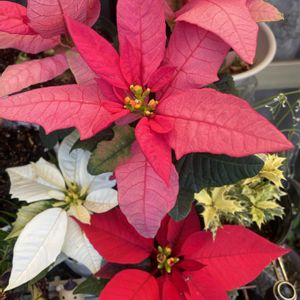 クリスマスにはポインセチア🎄🎅🎁 ピンクから始まり 赤と白と♪ なかなか難しいのですが😓 次につながるように 大切に育てたいです♪