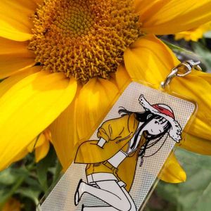 キカラスウリ お散歩ちゃんキーホルダーのひなたちゃんにまとわせてみた。 美しく、着こなしたね。 お散歩ちゃんは、冬野カモメ先生作出、ガチャガチャで展開中。 アクリルキーホルダーの透明部分に柄が出る仕組み。 着せ替えは無限。