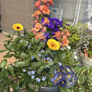 昨日購入したお花達を寄せ植えにしてみました 足りない所はこぼれ種からのアリッサ厶と種蒔きっ子のビオラ.ガーデンシクラメンを入れてみました🥰 ①②③ 寄せ植え 葉牡丹.プリムラジュリアン.ガーデンシクラメン.アリッサ厶. ビオラ💐🌿 ④ハクサンのマム 耐寒ー17度まで大丈夫だそう です💛💛💛 ⑤ビデンス 色が綺麗に出ています❤️🧡