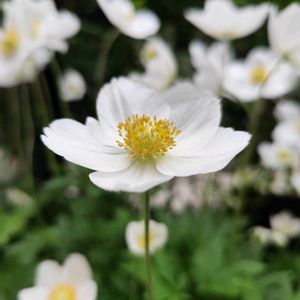 お早うございます😊☀ ❁🤍アネモネ・シルベストリス マドンナ 鉢植えの方ですが 沢山咲いてます。 春風にソヨソヨ♪🎶 何か口ずさんでる🎶♬ えぇっ~!! つがる かいきょう〜ふゆげ〜♪♪ ち、違うでしょ〜🙄😂🤣🤣🤣 ❁🤍マドンナ嬢 今は その気分なのよ❢婆ちゃん❗️ す、スンマセン😁 今日も 愉しく楽しく元気に笑顔で🥰✌️