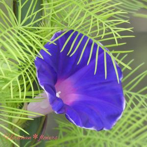 「青い💙朝顔」 ルコウソウの支柱から時々 咲く朝顔💙