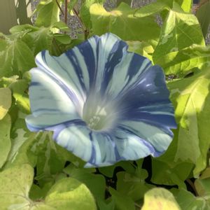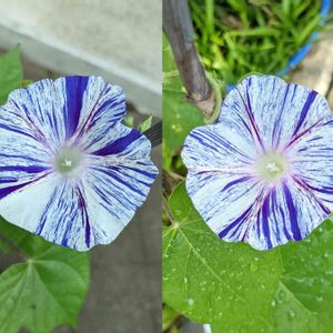本日2枚目も今日のお花 アサガオ🌿💠🌿 粋なお姉さんの浴衣みたいな 条斑朝顔🌿💠🌿 この子達は種を下さったお宅で💠 一つ一つ絞り柄が違います🌿💠🌿 左は今朝、右は一昨日の朝🌄 🏷美しく青きドヨウ 🏷青い朝顔マニア 🏷おしゃれな土曜日♪