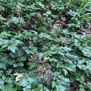 オウレンの花が終わった状態❁. 花びらの抜け殻みたいのが 不思議でたまらんです🤓