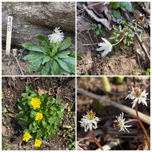 3/16 角田山 春の定番ですネ。みんなカタクリより先に咲きます。 ✌️✌️✌️😃😃😃✌️✌️✌️ ⬆️⬅️ キクバオウレン(菊葉黄蓮)。1回3出複葉なんて考えた事も有りません。決まり事、疑った事も有りません。新潟の里山は菊葉チャン。⬅️ は少しクリーム色です。 ➡️コシノカンアオイ(越の寒葵)ギフチョウのゆりかごです。地味野ジミ子ちゃんの代表です。 ⬇️ キクザキイチゲ(菊咲一華)。この娘はスプリング・エフェメラルなので、夏には姿を消してしまいます。雪割草を含めて他の娘達は、冬でも雪の下で葉を広げています。 ✌️✌️✌️😃😃😃✌️✌️✌️ やっと来た春に✌️ピース‼️。