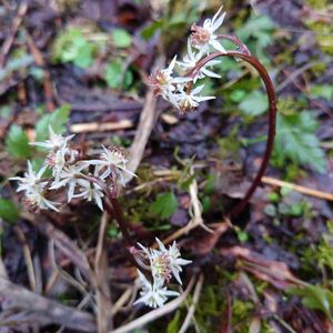 オウレンは常緑多年生の草本植物で、 数少ない日本特産の薬用植物です。 既に花は終わり 矢車のように広がった果実が特徴で解りやすいです。 しかし固有名称は……? セリバオウレンかな? 5月3日