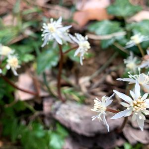 オウレンをご存知でしょうか? 春一番に咲く白い花です。が… 取りそこねました😅 タグ🏷辿っていただけると綺麗な写真が 待っているはずです。🙇🏻 picは花後のマニアックな1枚! 忘れてました😀でも可愛いくないですか?