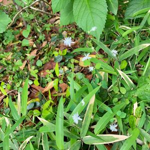 久しぶりの植物園散歩🎶🎶 やや暗い樹林内で白い小さな花を咲かせていました😊 春ですねぇ