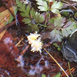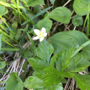 オウレン(黄蓮) 小さくて可憐な花。見つけました♪ 写真撮ってから気づいたのですが、よく見ると蚊がとまってます。 それくらいの小さな可愛い花でした😊